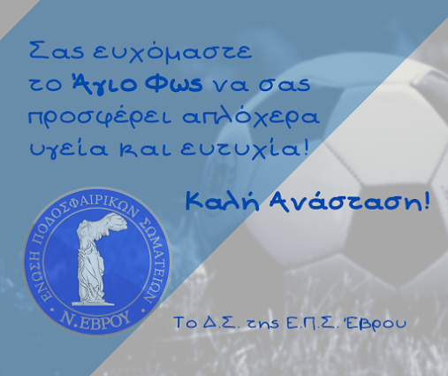 Σας ευχόμαστε το Άγιο Φως να σας προσφέρει απλόχερα υγεία και ευτυχία! Καλή Ανάσταση! Το Δ.Σ. της Ε.Π.Σ. Έβρου