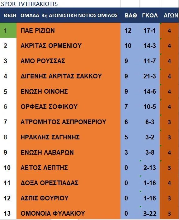 ΑΠΟΤΕΛΕΣΜΑΤΑ ΒΑΘΜΟΛΟΓΙΑ 1η ΑΓΩΝΙΣΤΙΚΗ ΒΟΡΕΙΟΣ & ΝΟΤΙΟΣ ΟΜΙΛΟΣ Α ΕΒΡΟΥ