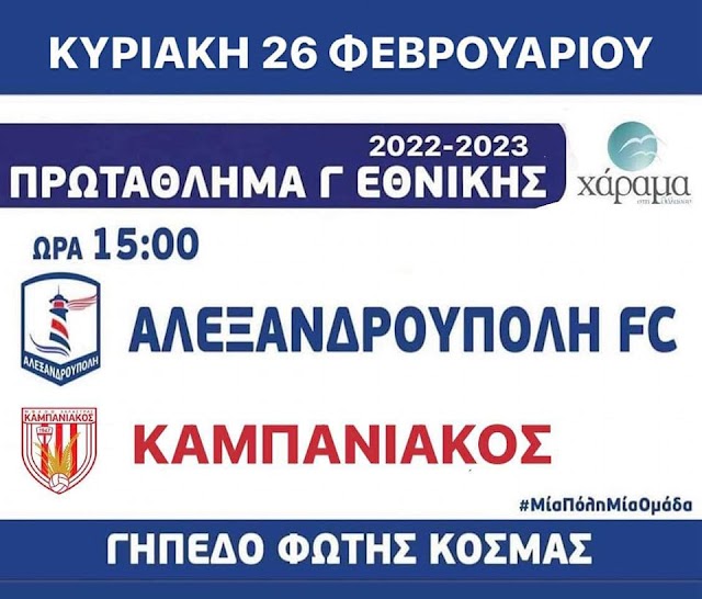 Read more »Την Κυριακή 26 Φεβρουαρίου 2023 η Αλεξανδρούπολη FC υποδέχεται τον πρωτοπόρο της βαθμολογίας Καμπανιακό! Ο αγώνας για την 18η αγωνιστική θα πραγμα…
