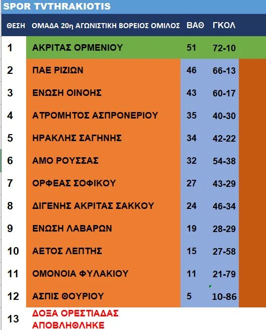 ΑΠΟΤΕΛΕΣΜΑΤΑ ΒΑΘΜΟΛΟΓΙΑ 1η ΑΓΩΝΙΣΤΙΚΗ ΒΟΡΕΙΟΣ & ΝΟΤΙΟΣ ΟΜΙΛΟΣ Α ΕΒΡΟΥ
