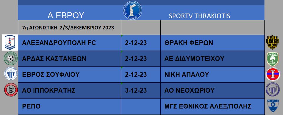 ΑΠΟΤΕΛΕΣΜΑΤΑ ΒΑΘΜΟΛΟΓΙΑ Α ΕΒΡΟΥ 6η ΑΓΩΝΙΣΤΙΚΗ